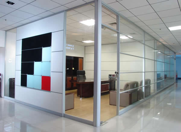 藝術(shù)玻璃隔斷利用玻璃色彩變換,營(yíng)造出藝術(shù)色彩,選擇這種隔斷需要注重辦公空間的整體風(fēng)格與藝術(shù)玻璃隔斷色調(diào)的一致性。